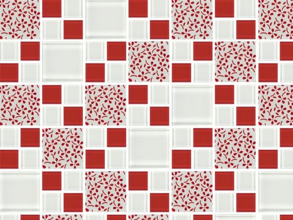Papel de Parede Autocolante com Pastilhas Vermelhas ou Pretas com Flores